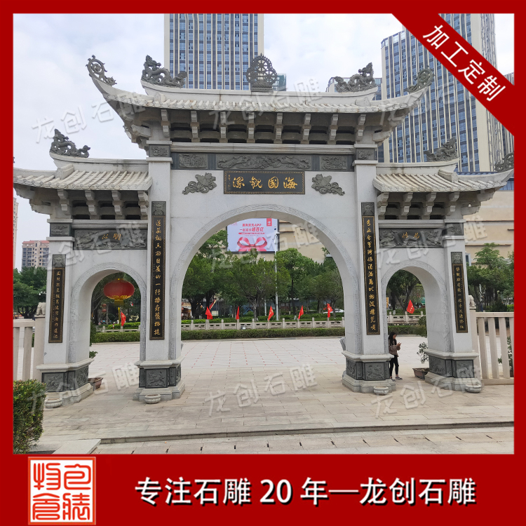 石牌樓制作所采用的原材料是決定石牌樓價格的主要因素。市面上適合雕刻石牌樓的原材料有花崗巖、青石、五蓮紅、芝麻白、芝麻灰等。一般石牌樓雕刻采用青石和花崗巖的比較多,這種石料本身質地好,而且花色紋路選擇多,加上這種石材價格比較實惠,適合在不同的場合中使用。而五蓮紅和花崗巖這兩種石材價格稍微高一些,石牌樓根據(jù)用的材料質地不同以及原材料的數(shù)量不同,石牌樓價格有很大的變化。