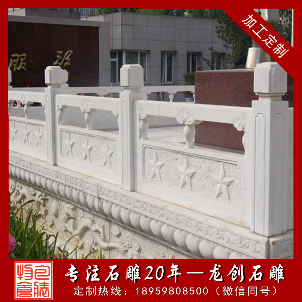 福建惠安縣龍創(chuàng)石雕工藝有限公司有多年生產雕刻石雕欄桿圖案的經(jīng)驗,長期生產加工各式材料的青石欄桿、大理石欄桿、漢白玉欄桿、河道石欄桿、石拱橋等,公司良好的管理團隊和石材專業(yè)技術人員秉承“顧客至上,銳意進取”的經(jīng)營理念,堅持“客戶第一”“誠信+質量”的原則為廣大客戶提供優(yōu)質的服務。