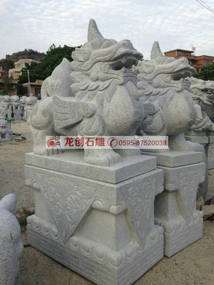 石雕貔貅又名天祿、辟邪,百解,共四個名字,是中國古代神話傳說中的一種神獸,龍頭、馬身、麟腳,形狀似獅子,毛色灰白,會飛。石雕貔貅兇猛威武,它在天上負責巡視工作,阻止妖魔鬼怪、瘟疫疾病擾亂天庭。晚霞紅貔貅、石貔貅、聚財貔貅在古代社會中,通常上至帝王、下至平民百姓都有在身上戴貔貅的習慣,因為貔貅是一種比較兇狠的神獸,傳說貔貅因為違反了天條而被玉皇大帝處罰,讓它只能吞下多方的東西但是卻沒有肛門不能排泄,具有特殊的能力貔貅可以為他們帶來好運和快樂,趕走身邊的晦氣,古時候人們也常用貔貅來作為軍隊的稱呼。它有嘴無肛門,能吞萬物而從不瀉,可招財聚寶,只進不出,神通特異。現在很多中國人配戴貔貅的玉制品正因如此。