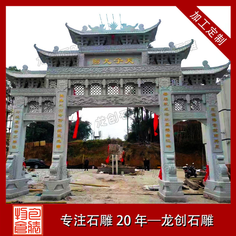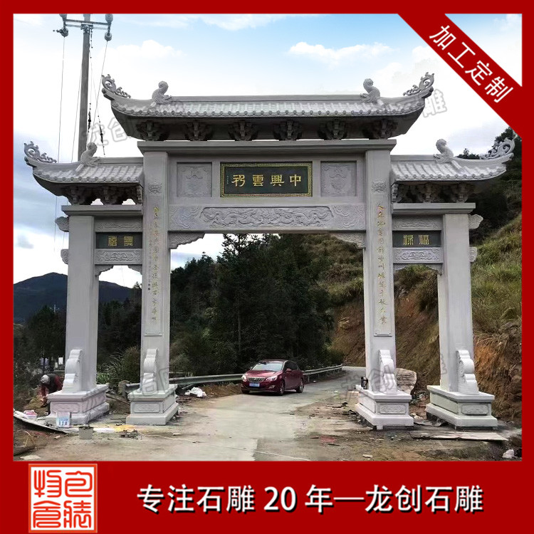 以上分享的石牌樓是中式典型的三門四柱石牌樓造型,作品結(jié)構(gòu)緊密,設(shè)計(jì)精巧,款式古樸,是古建景區(qū),宗教寺廟,村莊入口常用的景觀擺件。惠安龍創(chuàng)石雕支持定制各種樣式的石牌樓、石牌坊,專注石雕20年,匠心制作,自有礦山,價(jià)格實(shí)惠。