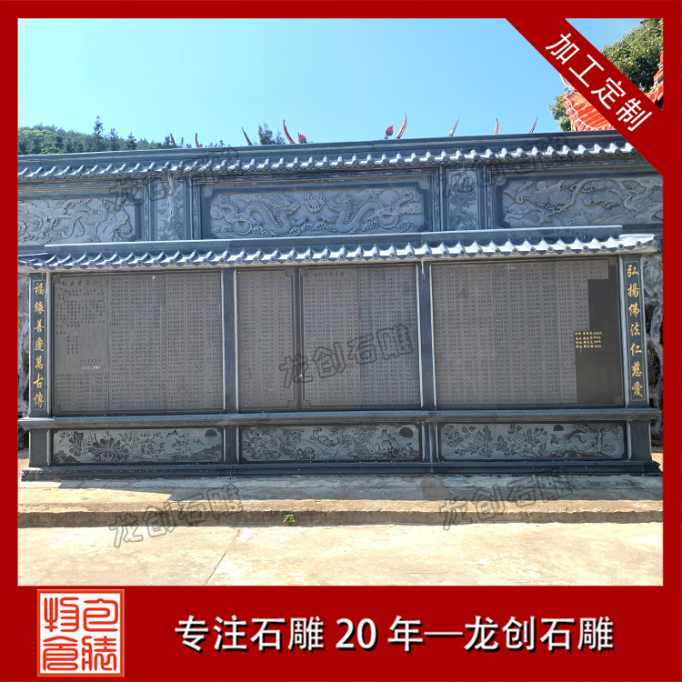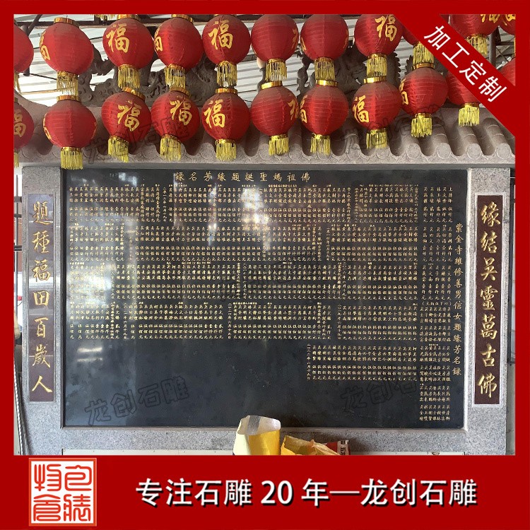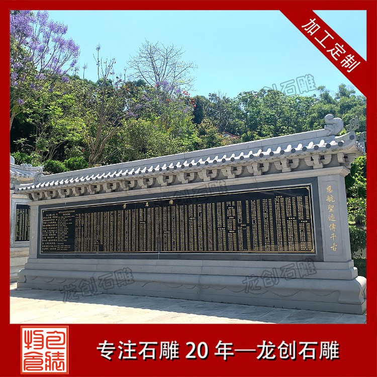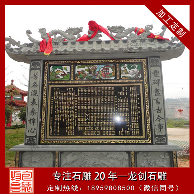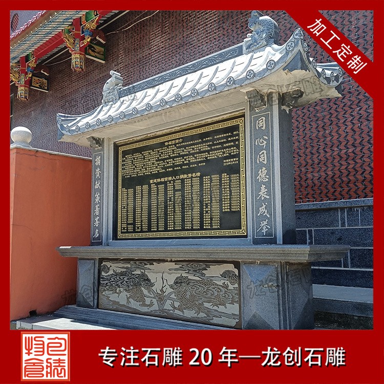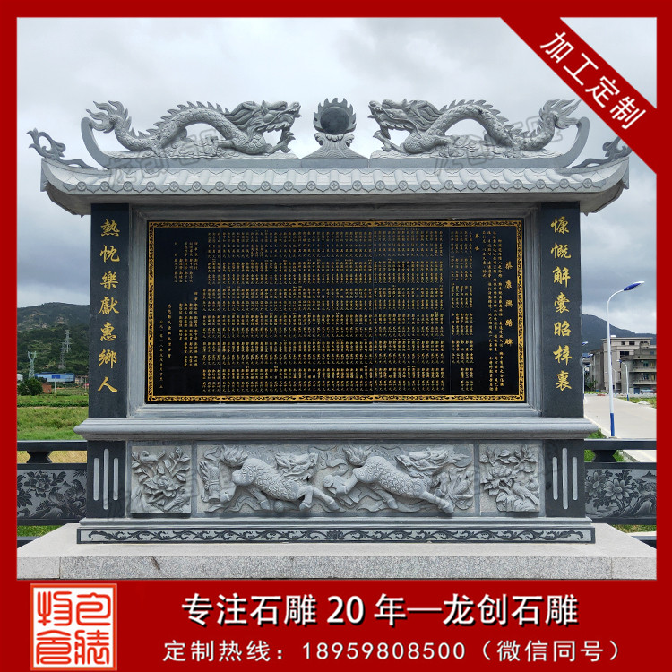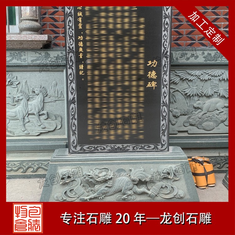 設(shè)計特點:通常由一塊長方形的石頭精心雕刻而成,上面刻有詳盡的文字內(nèi)容,如表彰對象的姓名、事跡、貢獻(xiàn)等,以及相關(guān)的圖案或浮雕,以生動形象地展現(xiàn)功德事跡的輝煌與偉大。