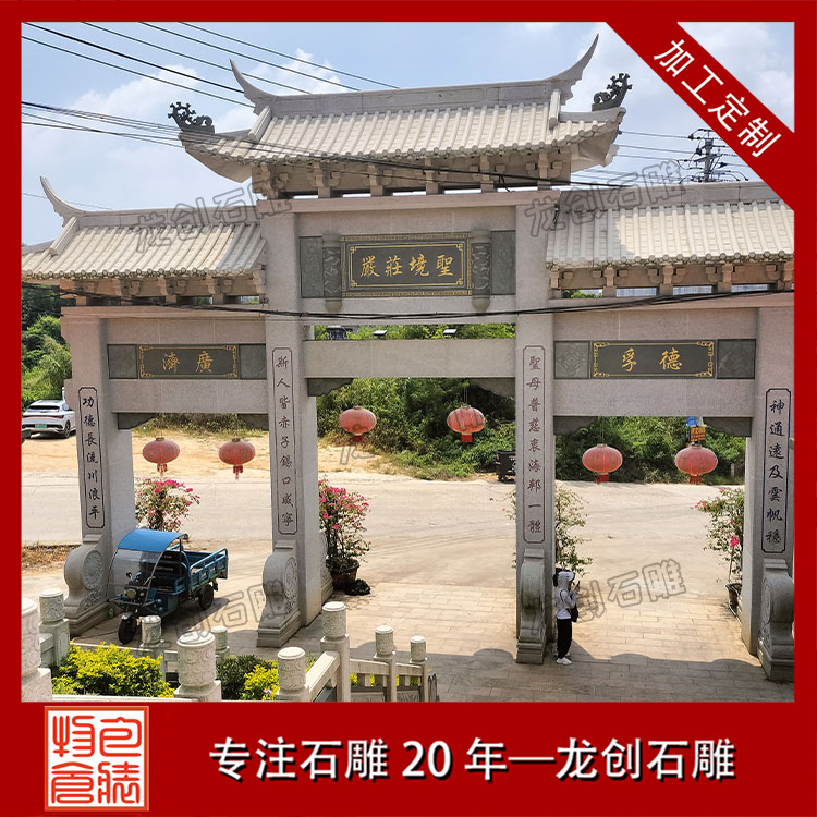 寺廟的三門五樓石雕牌坊,不僅是宗教信仰的象征,更是文化傳統(tǒng)的傳承載體?;莅部h龍創(chuàng)石雕工藝有限公司以卓越的工藝和豐富的經(jīng)驗,致力于為每一個寺廟創(chuàng)造獨特的文化名片。期待與您的合作,共同打造出更美好的寺廟建筑。
