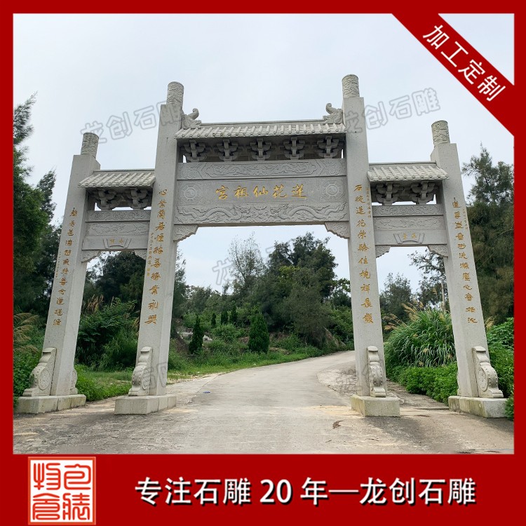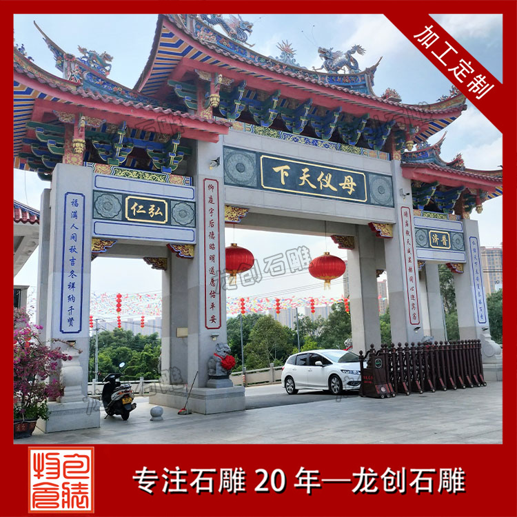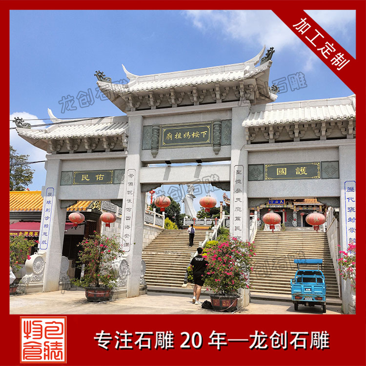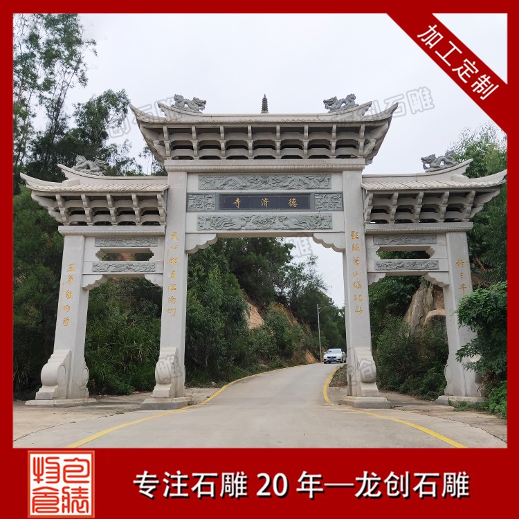 寺廟文化在中國有著悠久的歷史,寺廟不僅是宗教信仰的象征,更是人們精神生活的重要寄托。而在這個文化背景下,寺廟的建筑風(fēng)格、裝飾藝術(shù)同樣具有深厚的內(nèi)涵。位于惠安的惠安縣龍創(chuàng)石雕工藝有限公司,憑借其精湛的石雕技藝,在寺廟三門五樓石雕牌坊的制作上,結(jié)合了傳統(tǒng)工藝與現(xiàn)代設(shè)計的工藝。