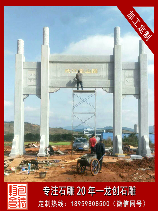 安裝地點(diǎn):江西省吉安市峽江縣龍山園項(xiàng)目名稱(chēng):石雕牌坊材質(zhì):芝麻灰規(guī)格:三門(mén)石雕牌坊安裝時(shí)間:2019年3月