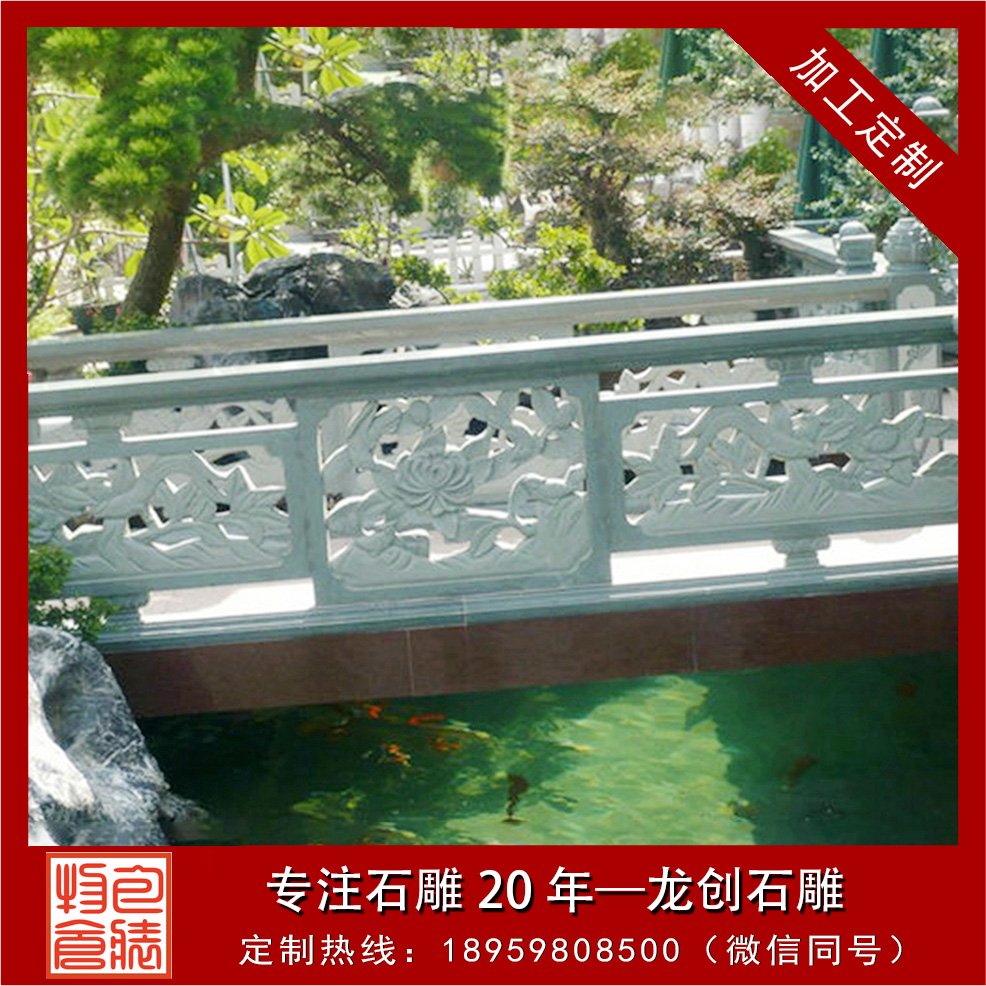 當我們選擇好石材之后,就可以進行雕刻圖案的選擇,好的雕刻圖案能夠讓石欄桿看起來更加地美觀,同時還有一定的安全功效,并且能夠讓整個環(huán)境增加了一些古色古香的氣息,這都是石材欄桿所具備的魅力。