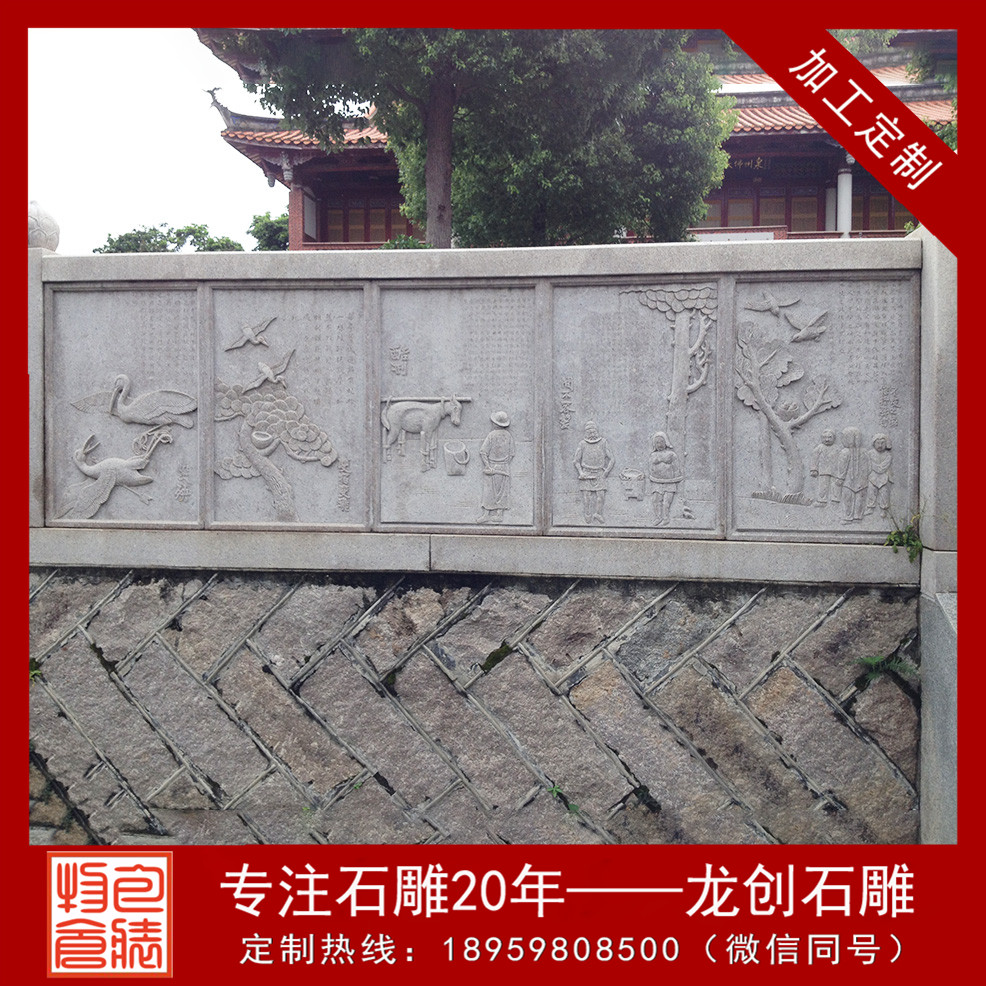 石材浮雕是將精巧的圖案雕琢在石材外表,美觀大方,且極富平面感。石材浮雕作為一種人們本人設(shè)計(jì)創(chuàng)作并雕琢的手工工藝品,是最古老的文化,并留給我們現(xiàn)代人豐厚的歷史文化藝術(shù)遺產(chǎn)。在大型浮雕制作中它一直用共同的手法和行為藝術(shù)方式來(lái)豐厚著人們的文化歷史。
