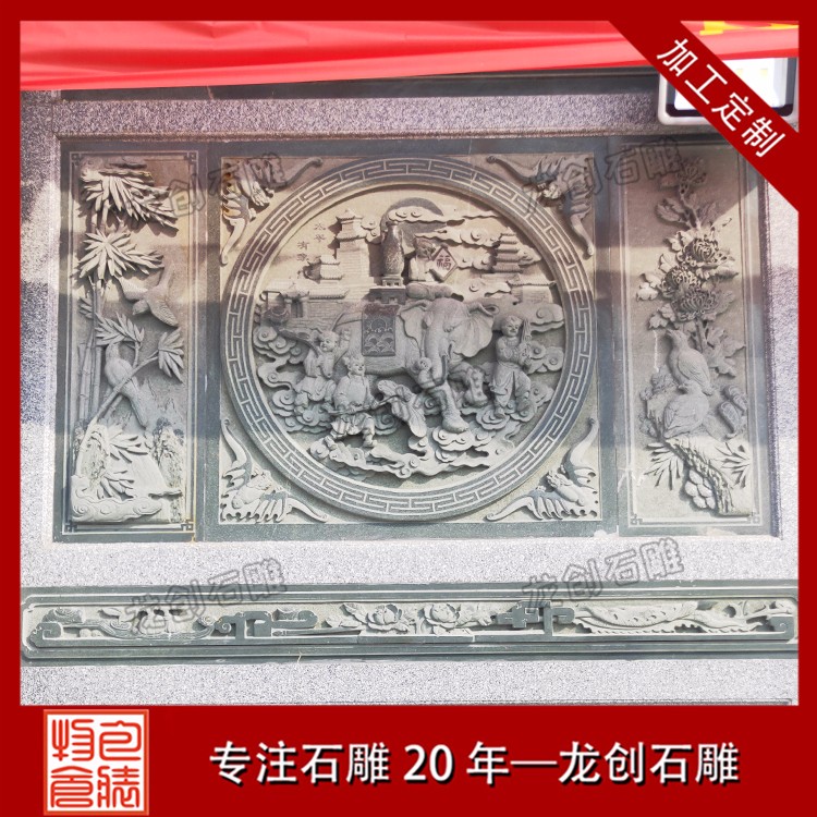 石材浮雕加工定制除了墻體浮雕壁畫雕刻外,還常集中在墻體的基座、墻身、墻檐、墻帽等處,無(wú)論是院內(nèi)的院墻、墻頂?shù)呐畠簤€是大門旁的翼墻我們都能看到。體基座一般都由磚砌筑成須彌座樣式,而為了防水、美觀,也經(jīng)常由石材筑成?;5癯龌⒀佬?、卷草形圖案。墻身、墻檐、墻帽等處則是雕刻較多的地方,如采用多層浮雕、鏤空雕雕出場(chǎng)景深遠(yuǎn)的美麗景色、戲文故事等,墻帽下檐雕出如連珠混、卷草彎等多種裝飾浮雕壁畫圖案。