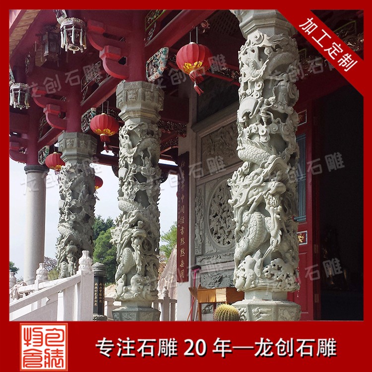 寺廟石龍柱在選擇石材上面建議使用天青石,因?yàn)樘烨嗍@種石材顏色比較接近古建筑,和廟宇、祠堂、寺院比較搭配,石龍柱雕刻是以龍的形象作為根本,在石柱上進(jìn)行雕刻,更好的展現(xiàn)出龍的各種樣式,就這樣簡(jiǎn)單的一根石柱子,上面雕刻了不僅是龍的造型這么簡(jiǎn)單,其實(shí)里面蘊(yùn)藏了很多文化。是我們龍的傳人的內(nèi)涵。