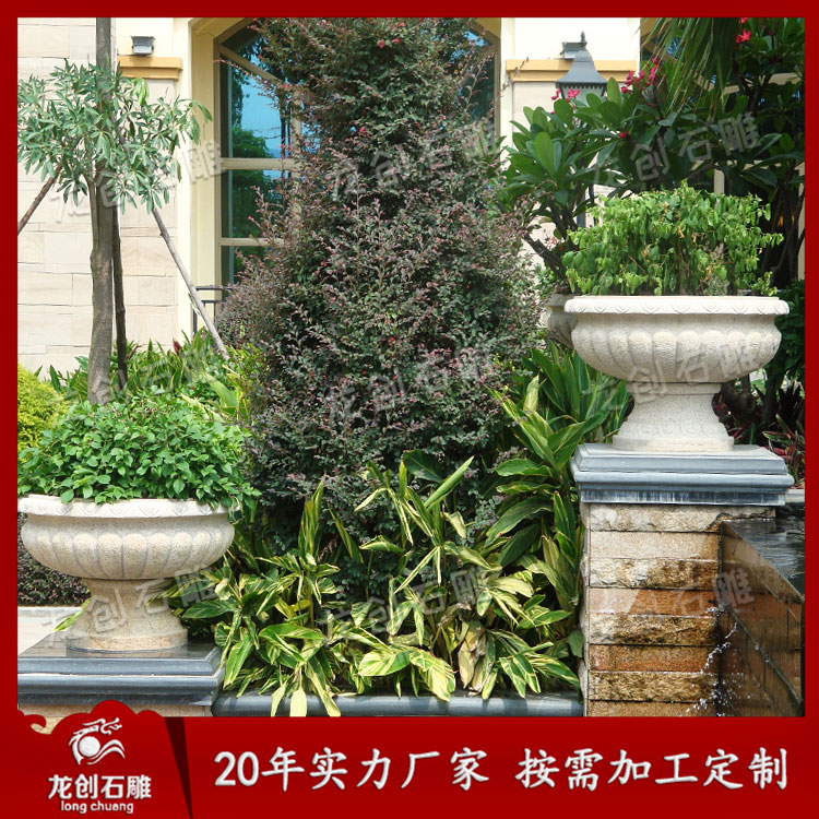 大理石花盆:此花盆是用上好石材雕刻制成,其顆粒細膩,質(zhì)地較好,顏色多樣,表面可以做效果。
