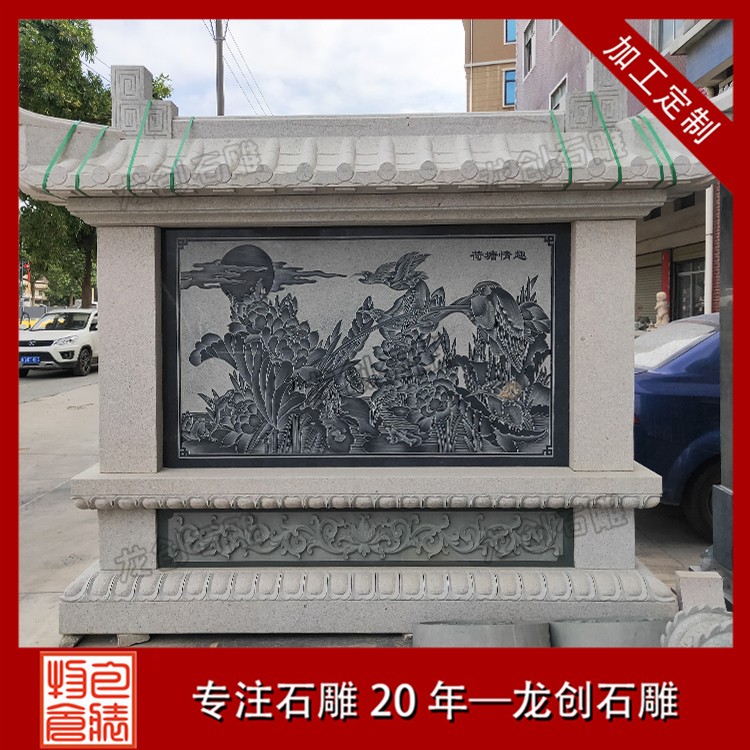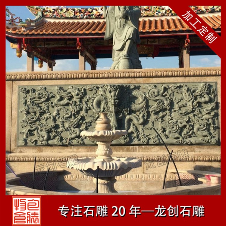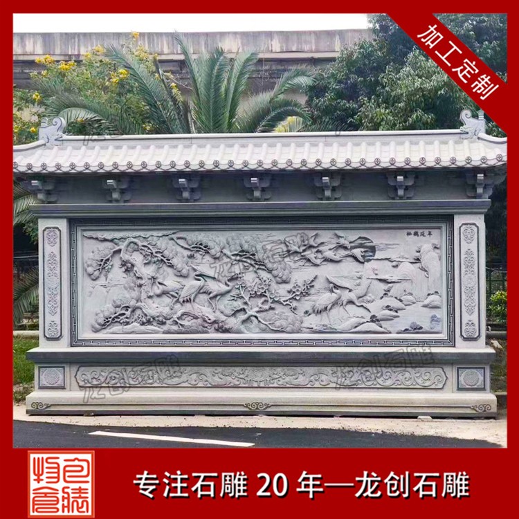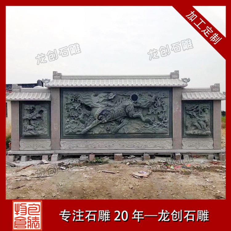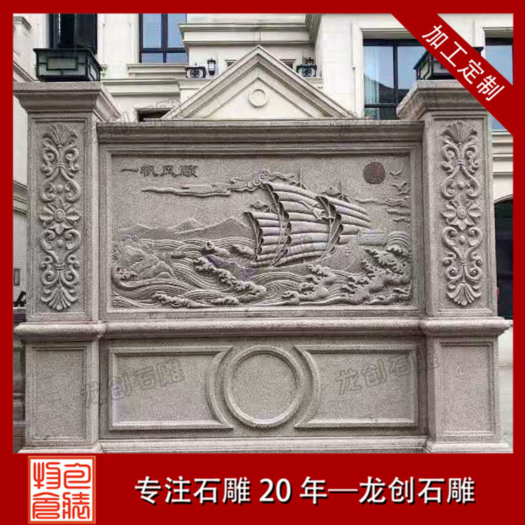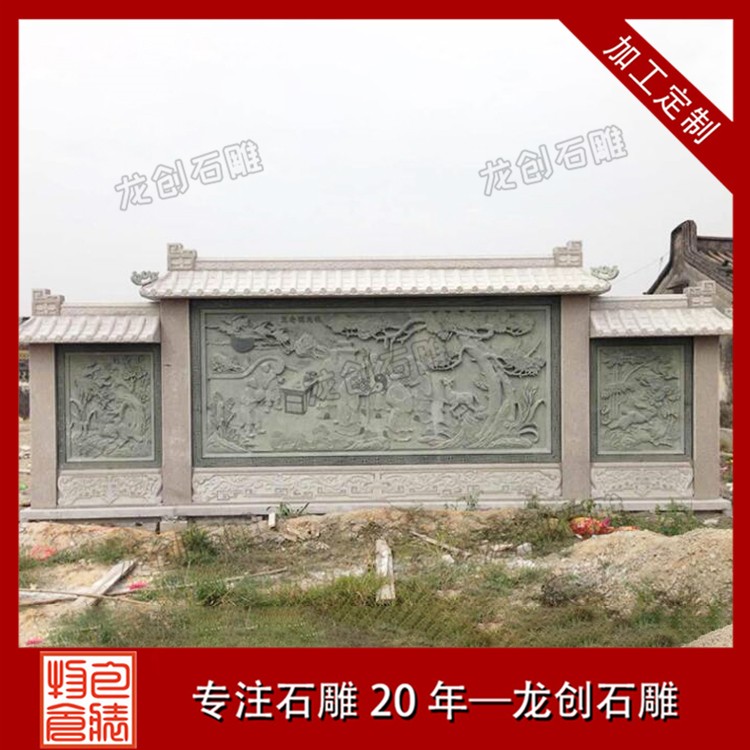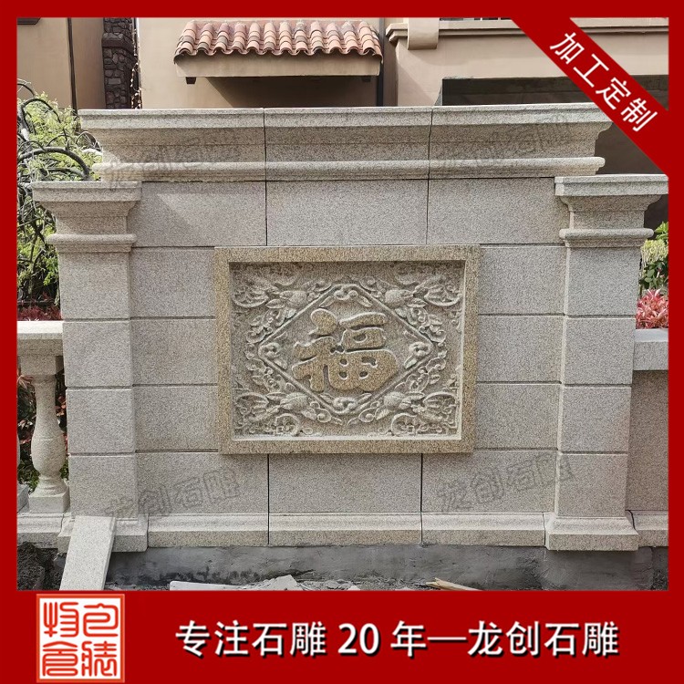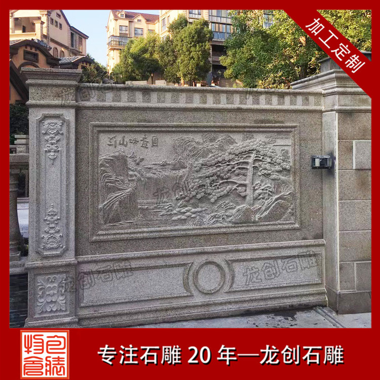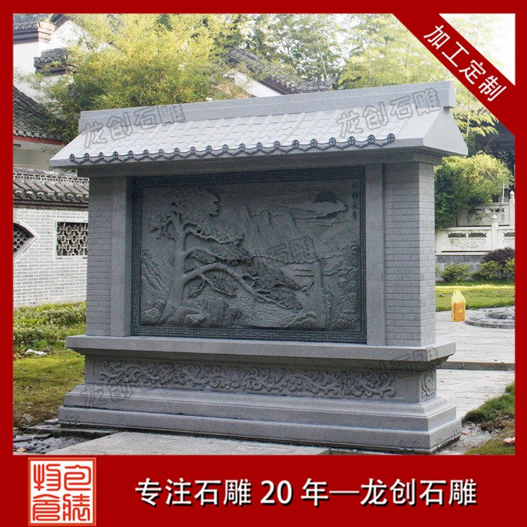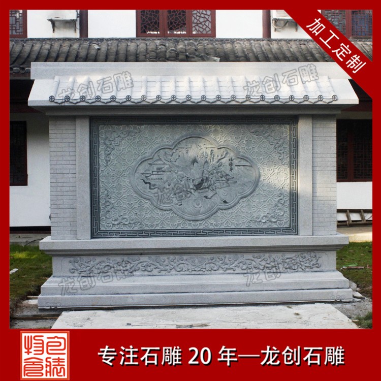 石材浮雕照壁就是用石材雕刻的一種墻面,也稱石雕影墻、石雕照墻,是古代寺廟、宮殿、官府衙門和深宅大院前的一種建筑,即門外正對(duì)大門以作屏障作用的墻壁。石雕照墻定制,選惠安龍創(chuàng)石雕。