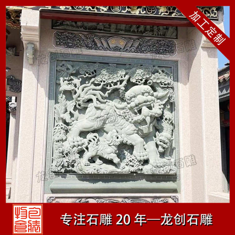獅子在中國文化中被視為祥瑞的象征,具有避邪驅(qū)鬼、守護家宅的意義。因此,在宗祠門前安裝獅象浮雕,既能起到裝飾的作用,又能表達對宗族的保護和祝福。獅象浮雕通常由石雕師傅們根據(jù)宗祠的特點和要求進行設(shè)計和定制。設(shè)計師們會結(jié)合宗祠建筑風格和宗族的歷史背景,創(chuàng)作出符合宗祠文化特色的獅子形象。