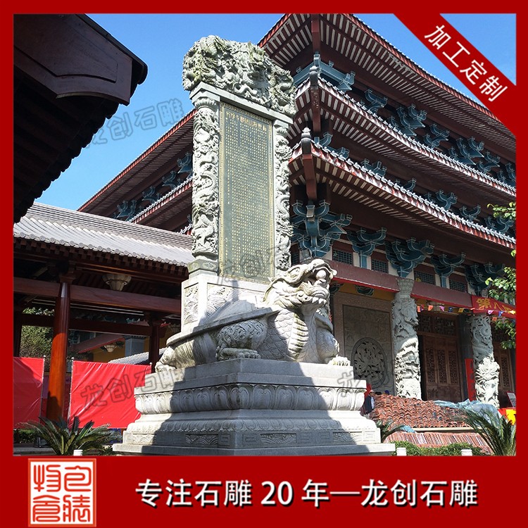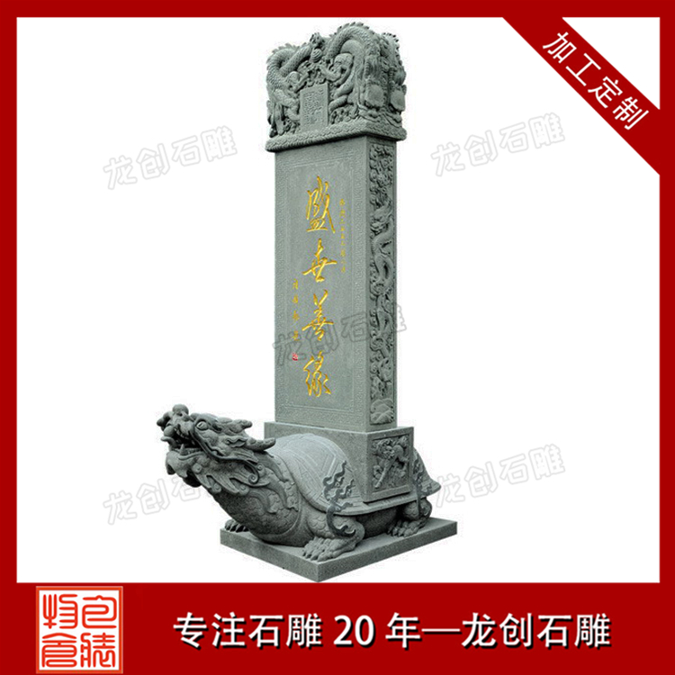 龜馱碑一般采用天然石材制作,常見的材質(zhì)有大理石、花崗石、青石等。這些石材都具有堅硬、耐磨、耐久的特性,能夠經(jīng)受住風(fēng)吹雨打和時間的考驗。同時,它們也具有良好的雕刻性能,可以雕刻出精細的圖案和文字。