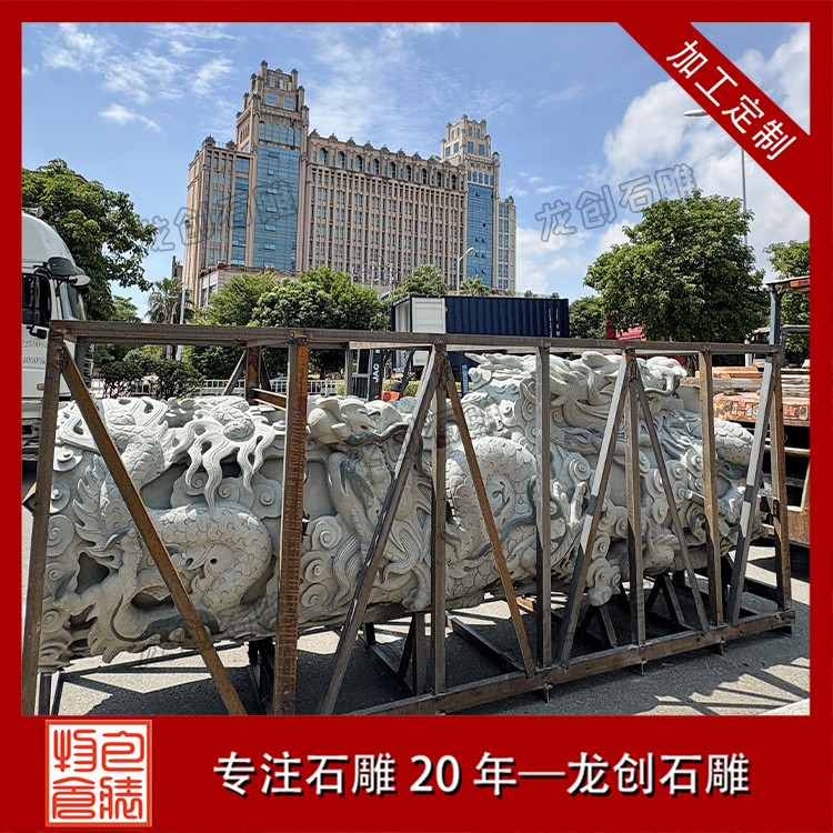 雕刻技法:局部磨光面+荔枝面+機(jī)切面,龍身浮 12-15公分(龍身分三段)