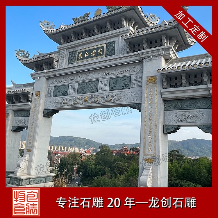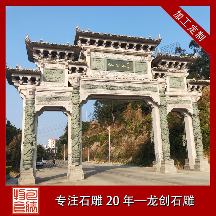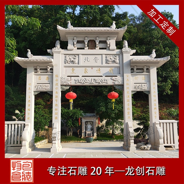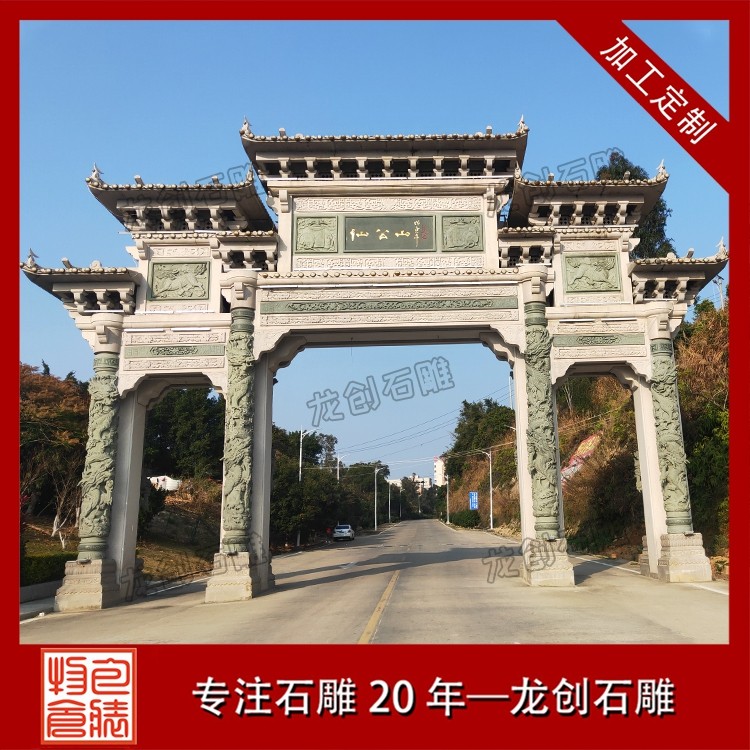 在景區(qū),往往首先映入眼簾的便是一座氣派的石牌坊。在這里,石牌坊扮演的是 “門面擔當” 的角色 。它的首要功能是標識和引導。牌坊上的匾額題字,點明了景區(qū)的名字和意境,告訴游人“由此進入,別有洞天”。更重要的是,它是風景的序言。在設(shè)計上,景區(qū)牌坊的雕刻主題會與內(nèi)部景致相呼應(yīng)。
