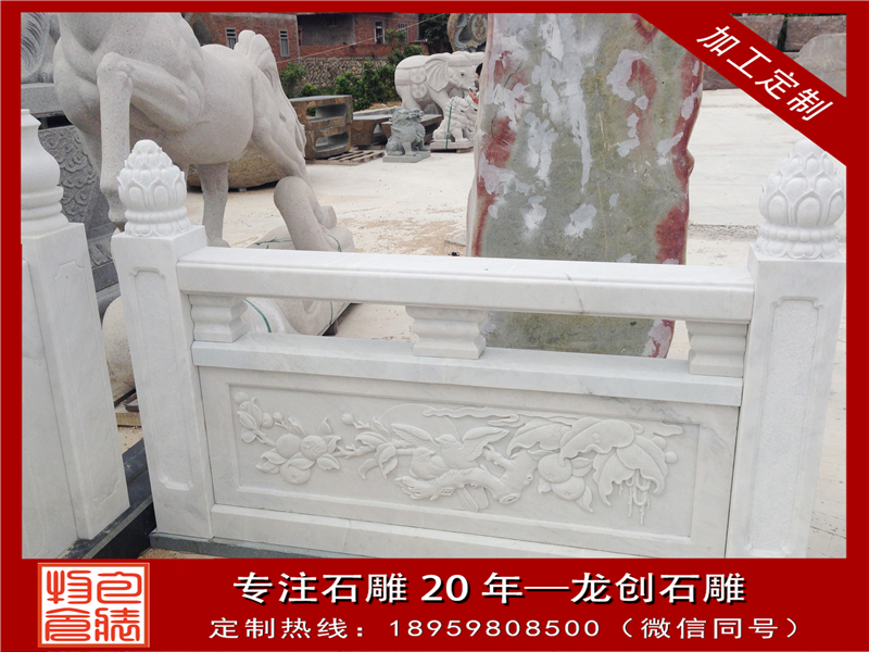 漢白玉石欄桿的制造安裝工藝是先人留下的寶貴財富,許多工藝的口訣都是工匠在操作中形成了自己的習(xí)氣,并一代代口傳親授,薪火相傳。漢白玉石欄桿具有很強的表現(xiàn)力,可雕刻出各種古典式樣的圖案。有著時尚、漂亮、環(huán)保、抗老化、不變形的功能優(yōu)點,可廣泛用于市政、水利、公園、交通橋梁等護欄工程。