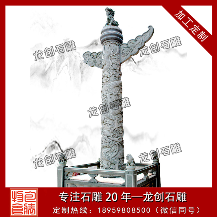 石雕中華柱(石雕華表)是古代宮殿、陵墓等大型建筑物前面做裝飾用的巨大石柱,是中國一種傳統(tǒng)的建筑形式。相傳華表既有道路標(biāo)志的作用,又有為過路行人留言的作用,在原始社會(huì)的堯舜時(shí)代就出現(xiàn)了,具有歷史悠久的特點(diǎn)。