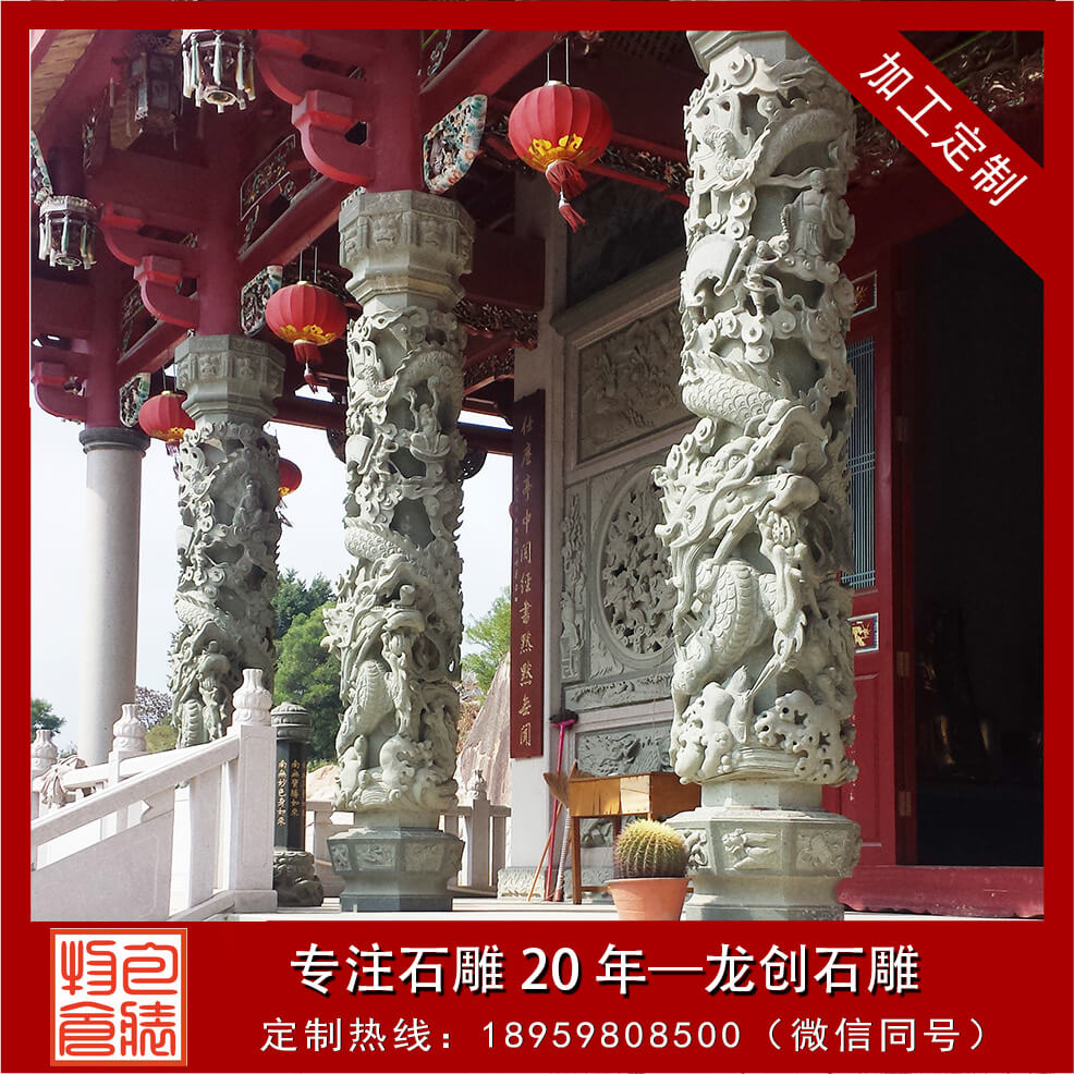 石雕龍柱的制作材質(zhì)有許多,有大理石、青石、花崗巖、黃秀石等石材。其中青石是龍柱常用的一種材質(zhì)。青石表秒色澤均勻、外觀美光大氣,其質(zhì)地較其他石材相對較軟,易于雕刻,不易磨損、抗風(fēng)化能力強、保留時間長久,廣泛應(yīng)用于各種產(chǎn)品的雕刻。石雕龍柱是文化于藝術(shù)的結(jié)合,展現(xiàn)著石雕藝術(shù)的風(fēng)采,它是藝術(shù)的一種表現(xiàn)形式。
