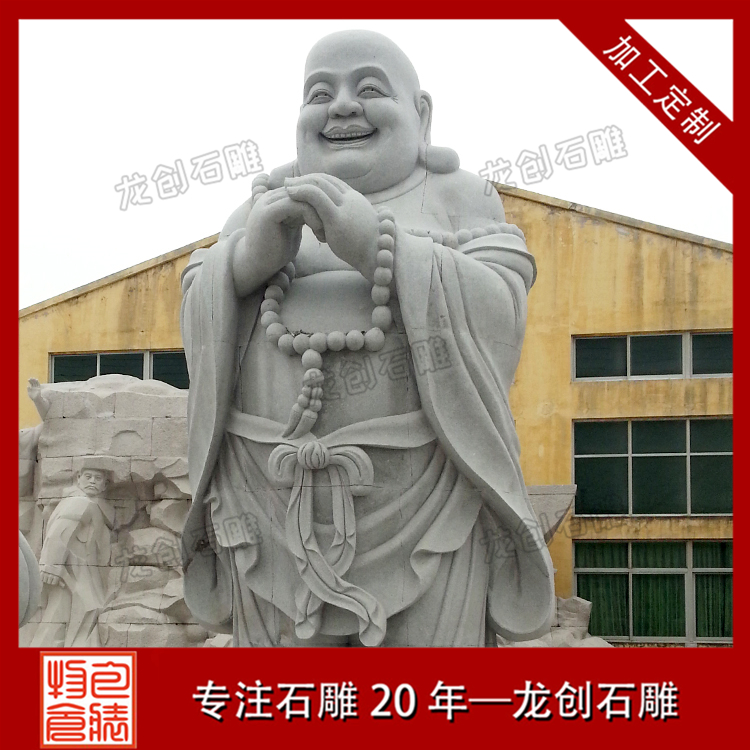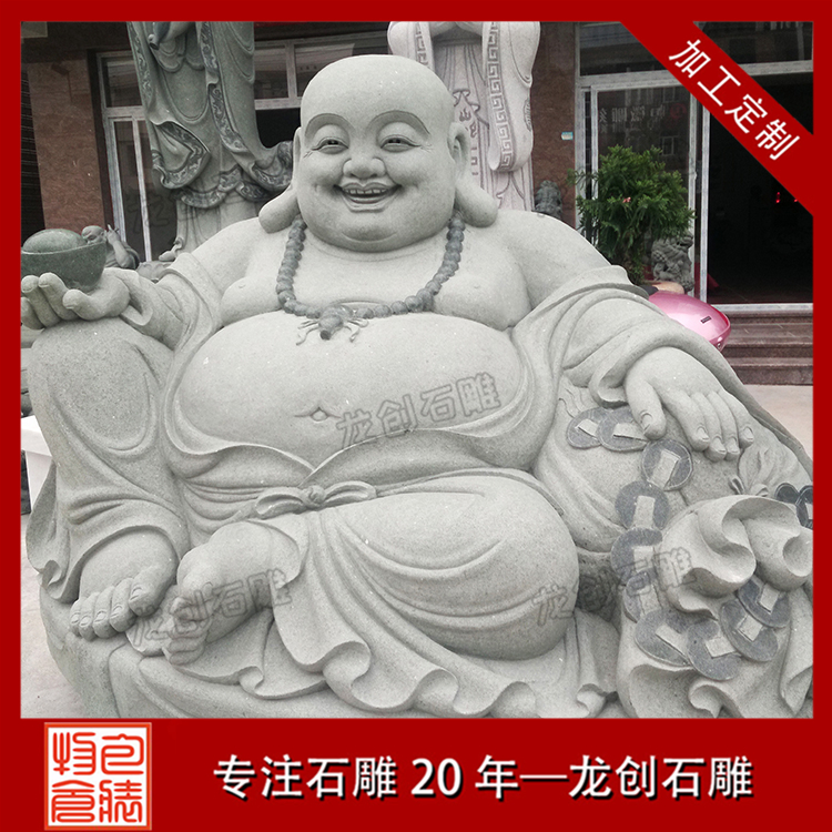 常見的彌勒佛像大都是圓頭大耳、袒胸開懷、笑容滿面的,后人則根據(jù)他獨(dú)特的笑容和開懷的大肚,在各處供有大肚彌勒佛像的寺廟里題寫出許多妙趣橫生、飽含深意的楹聯(lián)。人們對他的笑容印象很深刻,因此也被稱為石雕笑佛,惠安石雕笑佛批發(fā),歡迎選惠安龍創(chuàng)石雕。