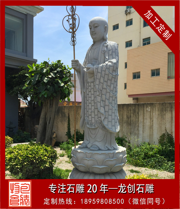 地藏王即地藏菩薩。地藏菩薩梵名乞叉底鹐沙(Ksitigarbha)。據(jù)《地藏十輪經(jīng)》講,由于此菩薩“安忍不動如大地,靜慮深密如秘藏”,所以稱為地藏王。