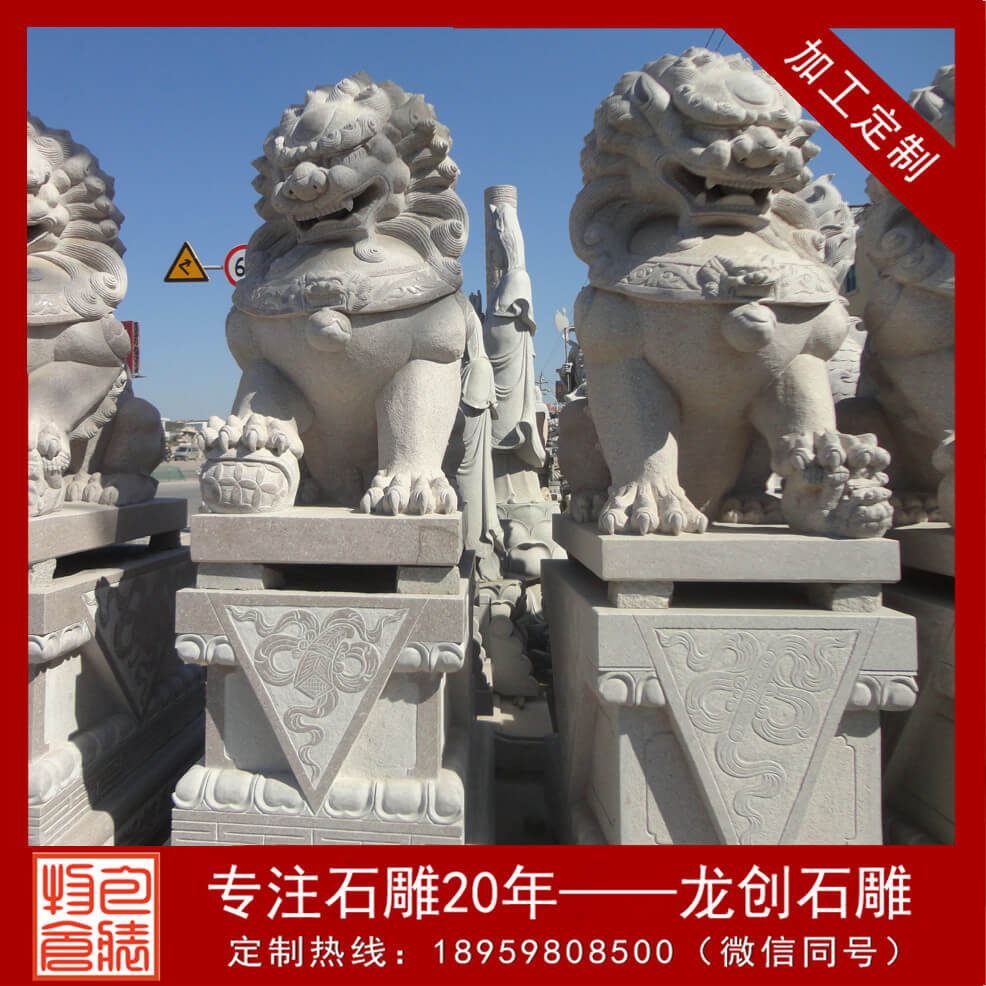 石獅子按不同的使用規(guī)??煞譃椤藿?gòu)件石獅、修建小品石獅與陳設(shè)用品石獅三大類。其廣泛使用于民間石雕中。