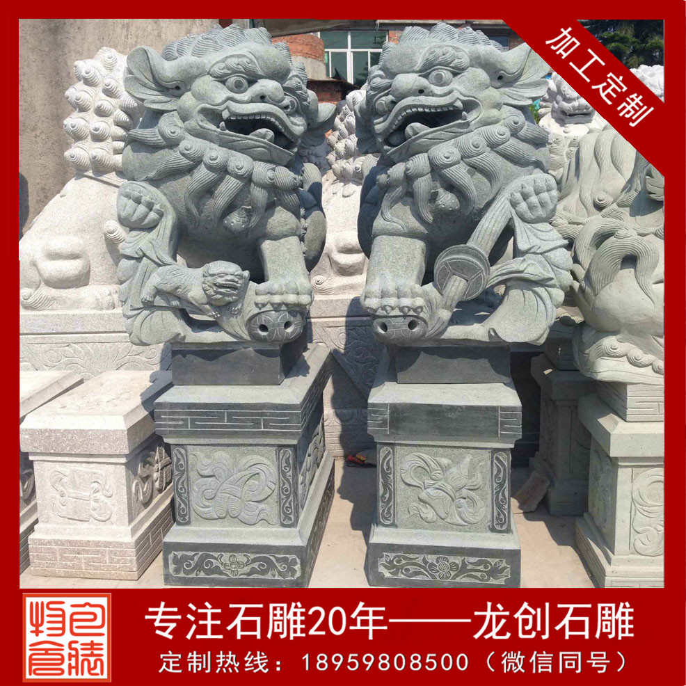 石獅子在明清時(shí)期的發(fā)展比之前更加的迅速,北方的雕刻工藝發(fā)展的同時(shí),南方的雕刻工藝也開始發(fā)力,特別是福建惠安一帶,因其獨(dú)特的地利位置和歷史原因,使得南北的雕刻工藝開始差異化,特別是北方的雕刻工藝還是依據(jù)漢唐時(shí)期的風(fēng)格,延續(xù)過程中獅子的形態(tài)依然是威武雄壯,比較出名的獅子加工基地北京地區(qū),河北地區(qū)和山東地區(qū)對獅子的雕刻都有著獨(dú)特的個(gè)性外,形態(tài)還是趨于雷同。而在南方,因?yàn)槟戏饺撕捅狈饺诵愿竦膯栴},南方的獅子比較溫順,特別是在福建地區(qū)的獅子,石獅子雕塑已從傳統(tǒng)的鎮(zhèn)宅辟邪的功能中走了出來,擁有了更多的寓意和內(nèi)涵,招財(cái)納福,平安如意等等。