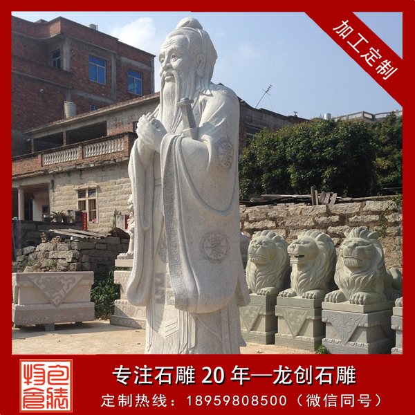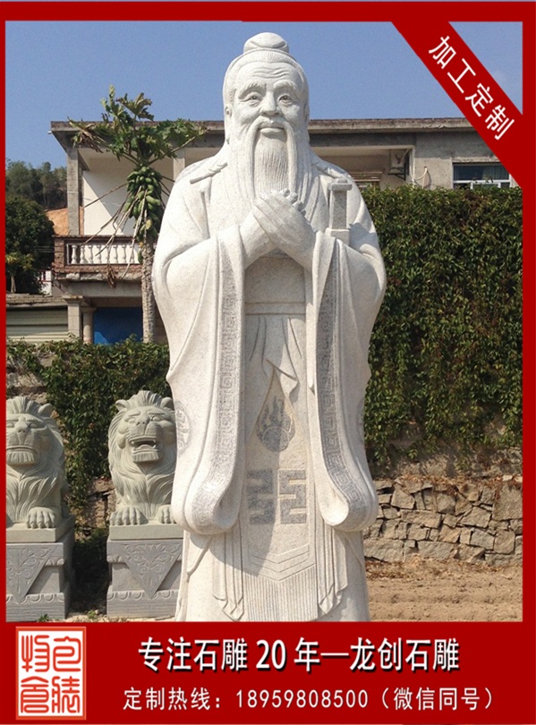 石雕孔子像是指用天青墨玉、霞玉、緬甸玉、漢白玉、墨玉、佘太玉、砂巖、大理石、花崗石、銀灰白石、雪花白等石材玉料雕刻的孔子像。石雕孔子就是孔子雕像,又名石雕孔子行教像,孔子標(biāo)準(zhǔn)雕像。