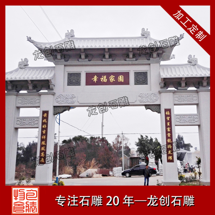 村頭石牌樓制作材質(zhì)有青石、花崗巖、大理石等,樣式有單門、三門、五門,三樓、五樓、七樓等,雕刻的圖案也是多種多樣,因此村頭石牌樓價格沒有一定的,預算多可選擇的樣式也就多,大理石牌樓價格,請致電我司咨詢,我們會給您一個專業(yè)的報價。
