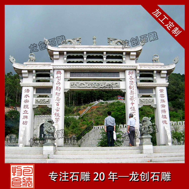 石雕牌樓的材質(zhì)有很多,青石、花崗巖、漢白玉都可以制作石牌樓,材質(zhì)不一樣,石牌樓價格也不一樣,其中價格最貴的是漢白玉石雕牌樓,由于漢白玉石材資源稀缺,開采量少,因此價格高,漢白玉石牌樓定制選惠安龍創(chuàng)石雕,雕刻工藝精湛,產(chǎn)品質(zhì)量上乘,源頭廠家,價位合理。支持來圖來樣定制,龍創(chuàng)石雕專業(yè)為您服務(wù),歡迎咨詢考察。